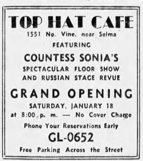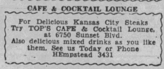 The Top Hat Cafe (trust me when I say there were A LOT of places with Top in their name) was just under a mile away from Hollywood High School: